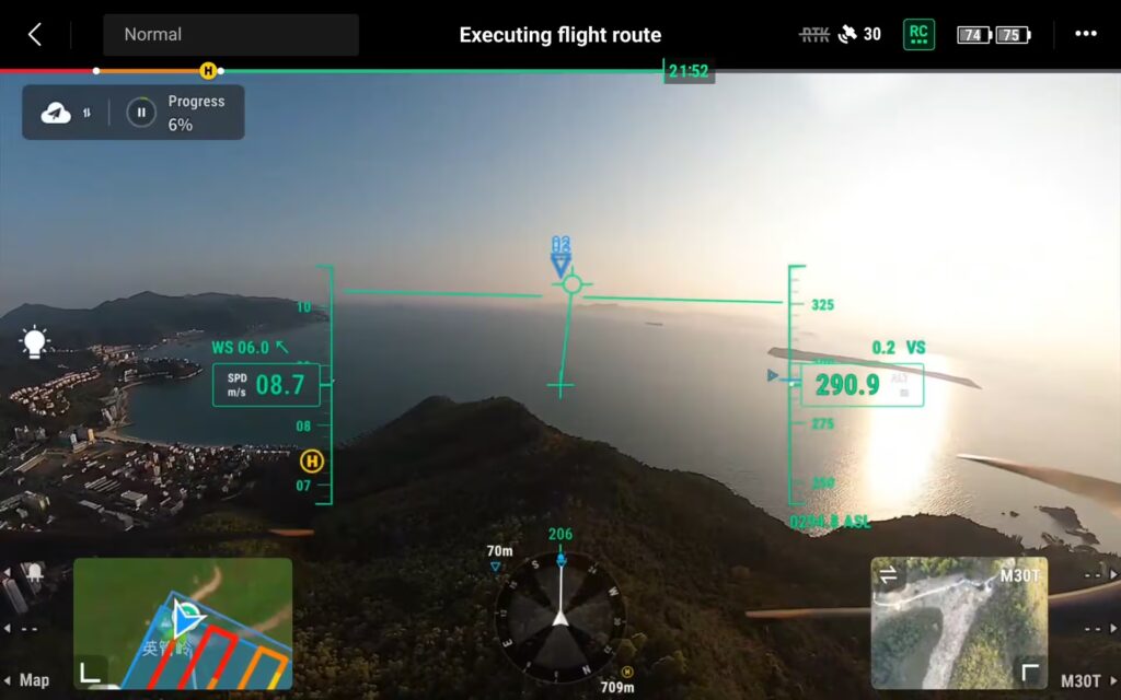The Matrice 30 and the DJI RC Plus uses a brand new fully revamped, next generation of the DJI Pilot flight app dubbed DJI Pilot 2. With this update, controls for the drone and payload can be accessed with a single tap. The user experience and flight efficiency are enhanced by clear presentation of flight details and navigational information.